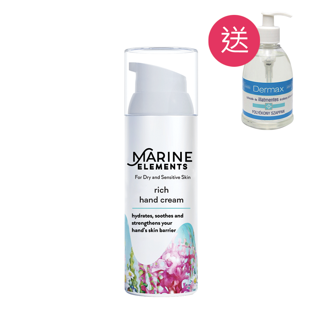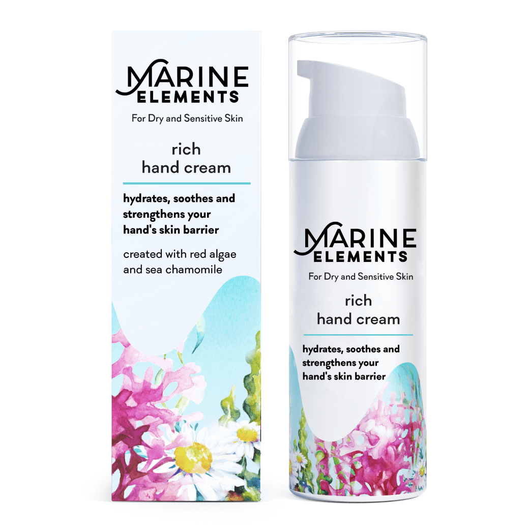 1) The extraordinarily moisturising Marine Elements Rich Hand Cream offers instant protection and repair to sensitive skin. Dryness and itching will be considerably reduced after the first use.